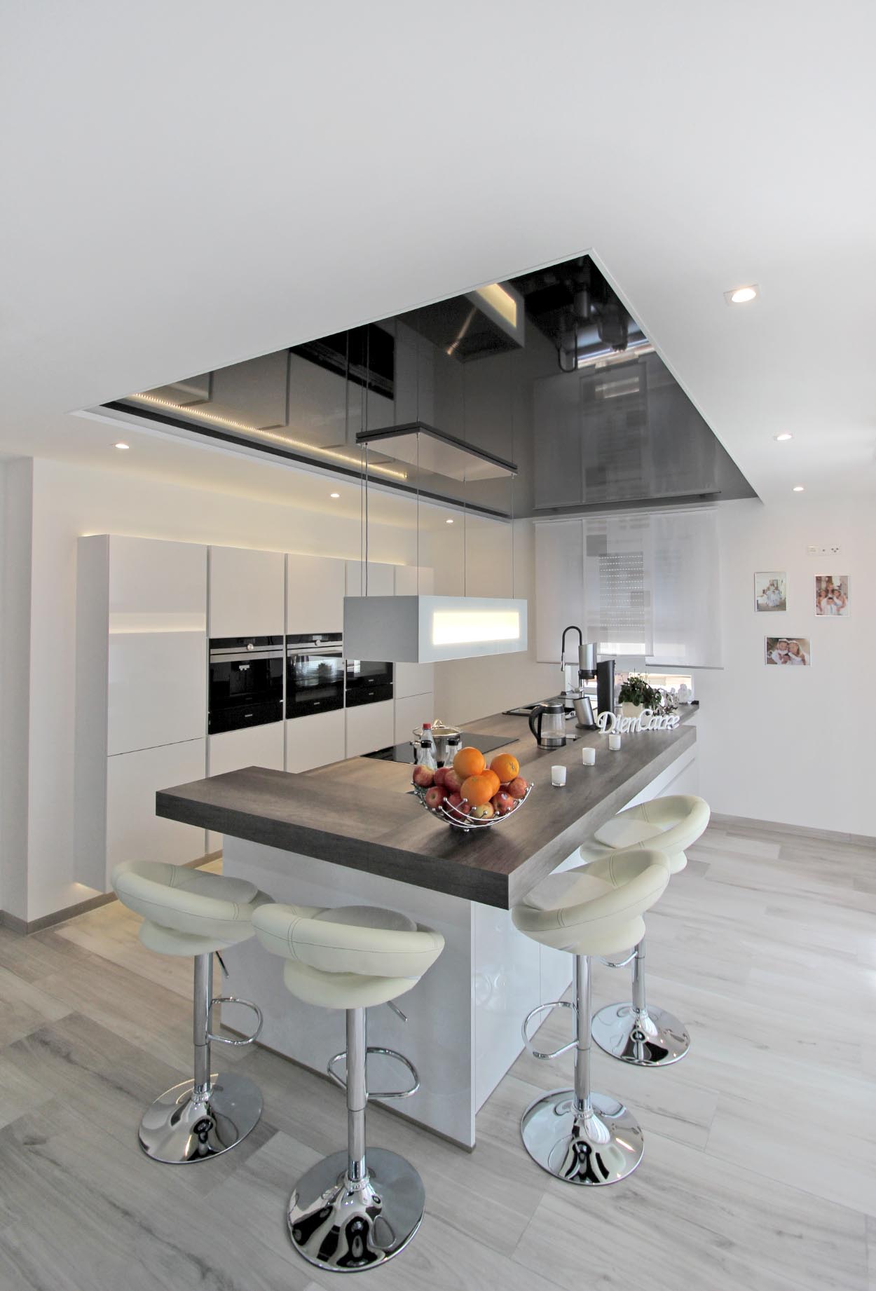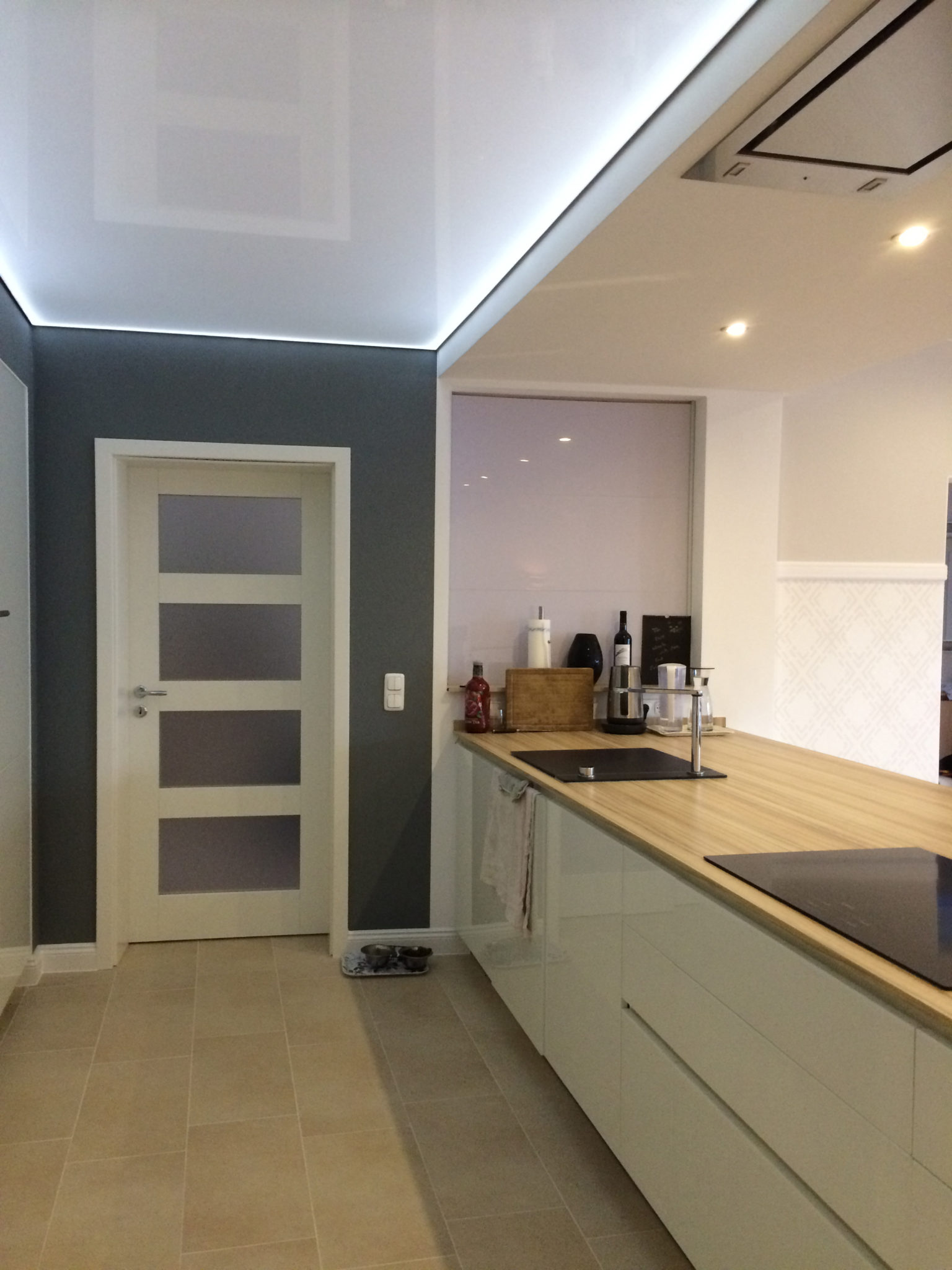Oblikujte individualno bivalno površino po svojem okusu. Zlasti na področju „odprtega bivanja“ lahko ustvarite diskretne optične meje z različnimi stropnimi površinami ali barvami. Na primer: v kuhinji strop z visokim sijajem in v sosednji jedilnici in dnevnem prostoru mat strop. Ob postavitvi raztegljivega stropa se spremeni vtis prostora in občutek udobja. Vrednost prostora povečate v zelo kratkem času, kar ne more storiti nobena druga vrsta prenove. Najboljše pa je, da je čas montaže le en dan, tako da je čas prenove za vas popolnoma nemoteč.