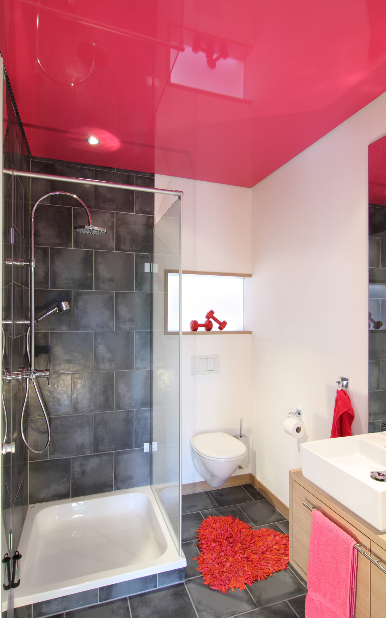 Še posebej v majhnih kopalnicah lahko dosežete poseben učinek s svetlo barvo. Ali pa z zelo temnim stropom pričarajte v vaši kopalnici ekstravaganco in žlahtnost.