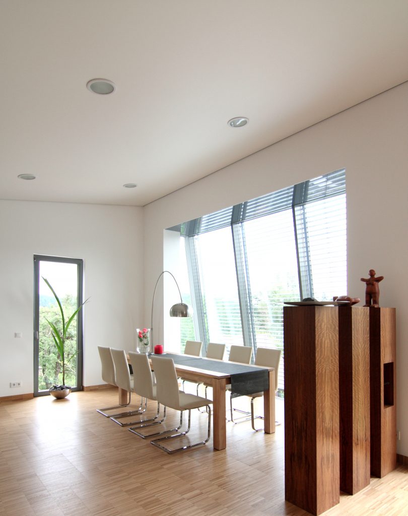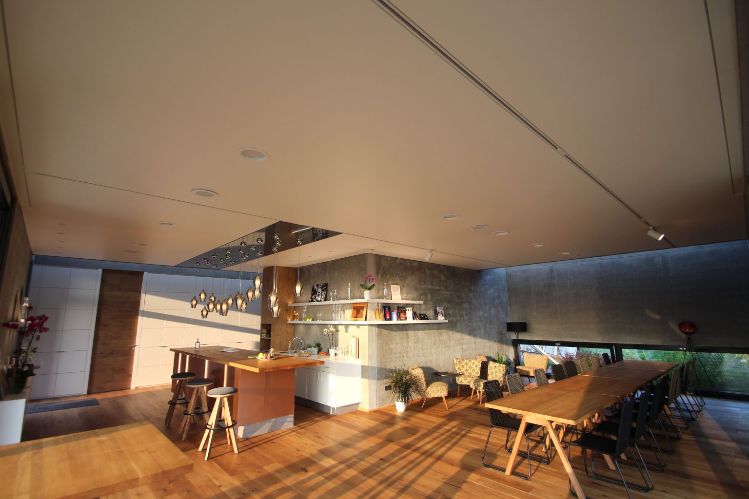 Z našimi razsvetljenimi (prosojnimi) stropi zagotovite eleganten strop z diskretno razsvetljavo. V neaktivnem stanju strop prepriča s sodobnim izgledom brušenega stekla, v aktivnem stanju pa se prebudijo skriti svetlobni elementi in gledalcu pričarajo homogeno in arhitekturno prepričljivo osvetlitev.